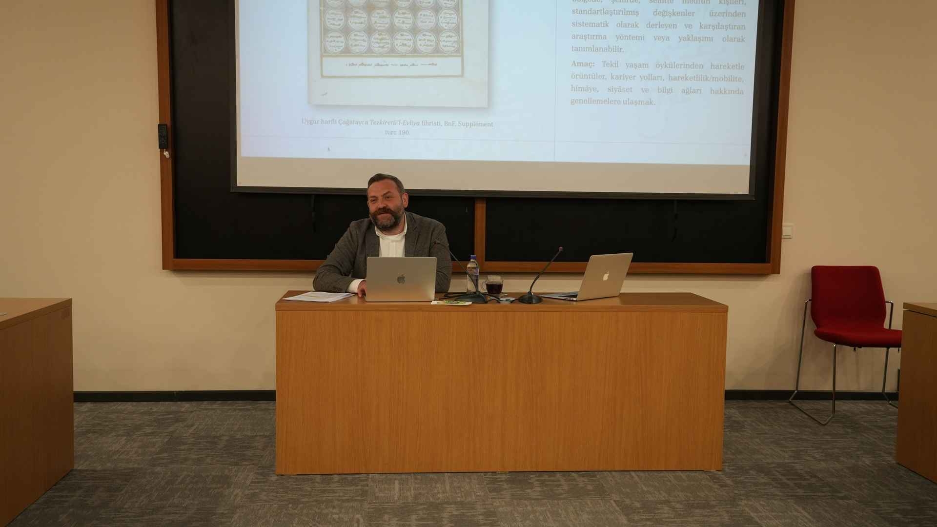 Etkinlikte, Türkiye Yazma Eserler Kurumu’ndan Dr. Alpaslan Fener, “Terâcimi Satır Arasında Aramak: Biyografi Yazımında Yazma Eserlerin Kaynak Değeri” başlıklı bir sunum gerçekleştirdi.